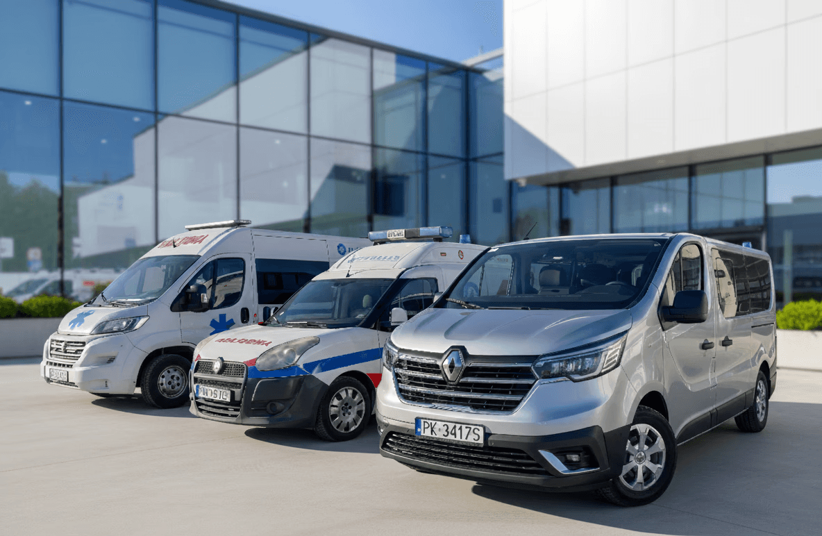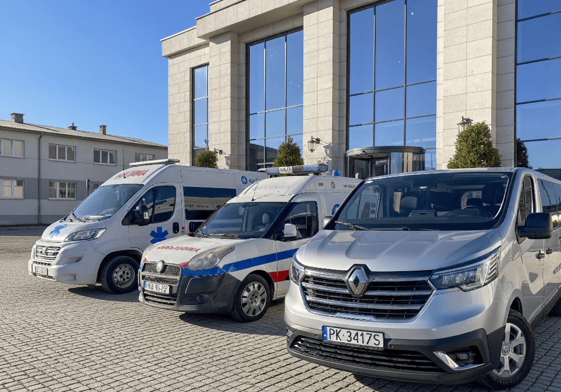 Posiadamy nowoczesny tabor, w tym ambulanse oraz busy z zabudową dla osób z niepełnosprawnościami